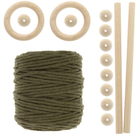 • Zestaw dla początkujących do tworzenia niesamowitych kompozycji makamowych i dzierganych. W komplecie znajdziesz : sznurek skręcany 5mm ~50m oraz akcesoria tj. koraliki drewniane, kijki do makramy, kółka do kwietnika.