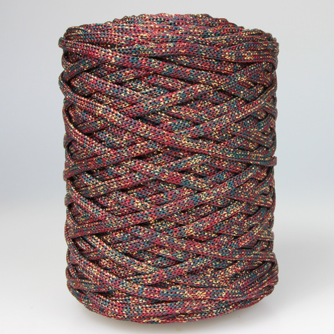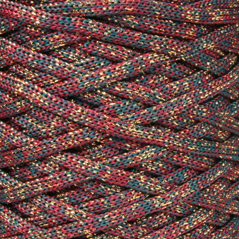 Sznurek Poliestrowy Płaski 5 mm – Kolor Świąteczny Zielono-Bordowy ze Złotą Nitką Lurex | Limitowana Edycja | Mia Mote™ ByBag Line
